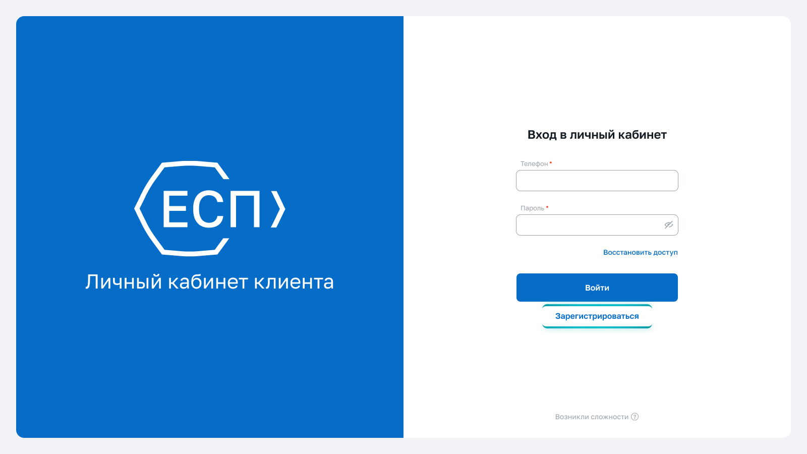 Как зарегистрироваться в личном кабинете клиента ЕСП
